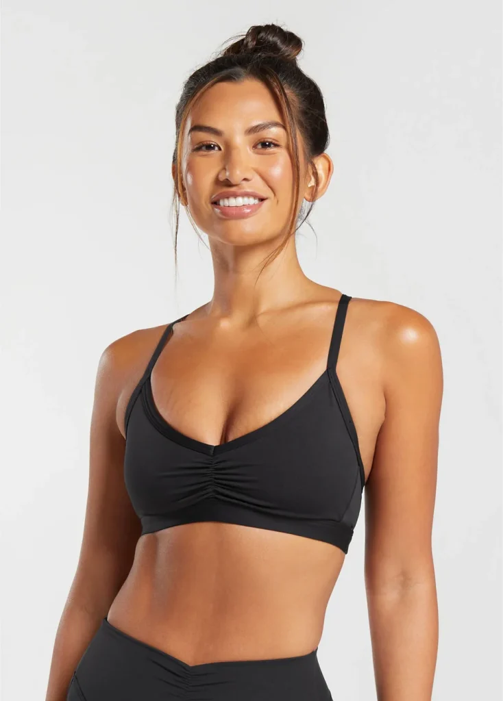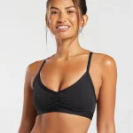 Es una prenda de ropa deportiva diseñada para ofrecer soporte durante actividades físicas. Este tipo de sujetador está confeccionado con materiales elásticos y transpirables que proporcionan comodidad y estabilidad. Los tirantes son delgados y ajustables, permitiendo personalizar el ajuste según las necesidades de quien lo use. El fruncido en la parte frontal o lateral del sujetador añade un detalle estético que también puede ayudar a dar una forma más favorecedora al busto. Es ideal para entrenamientos de bajo a medio impacto, combinando funcionalidad con un toque de estilo.